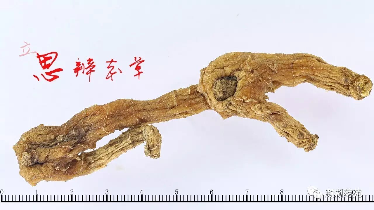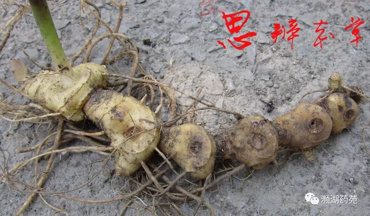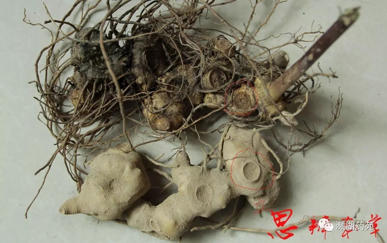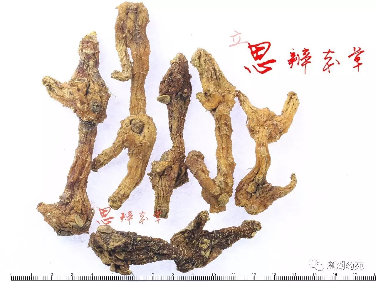 上图示鸡头黄精放大形态,每1节根茎上都有一个短分枝(分歧状),波状环节明显,一端粗一端细,细端较长,似鸡头。