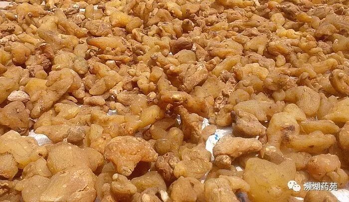 上图为大黄精药材个子,属于生黄精个子,加工时用灶火炕和滚筒去皮,再用太阳晾晒,同时会有硫磺熏制。