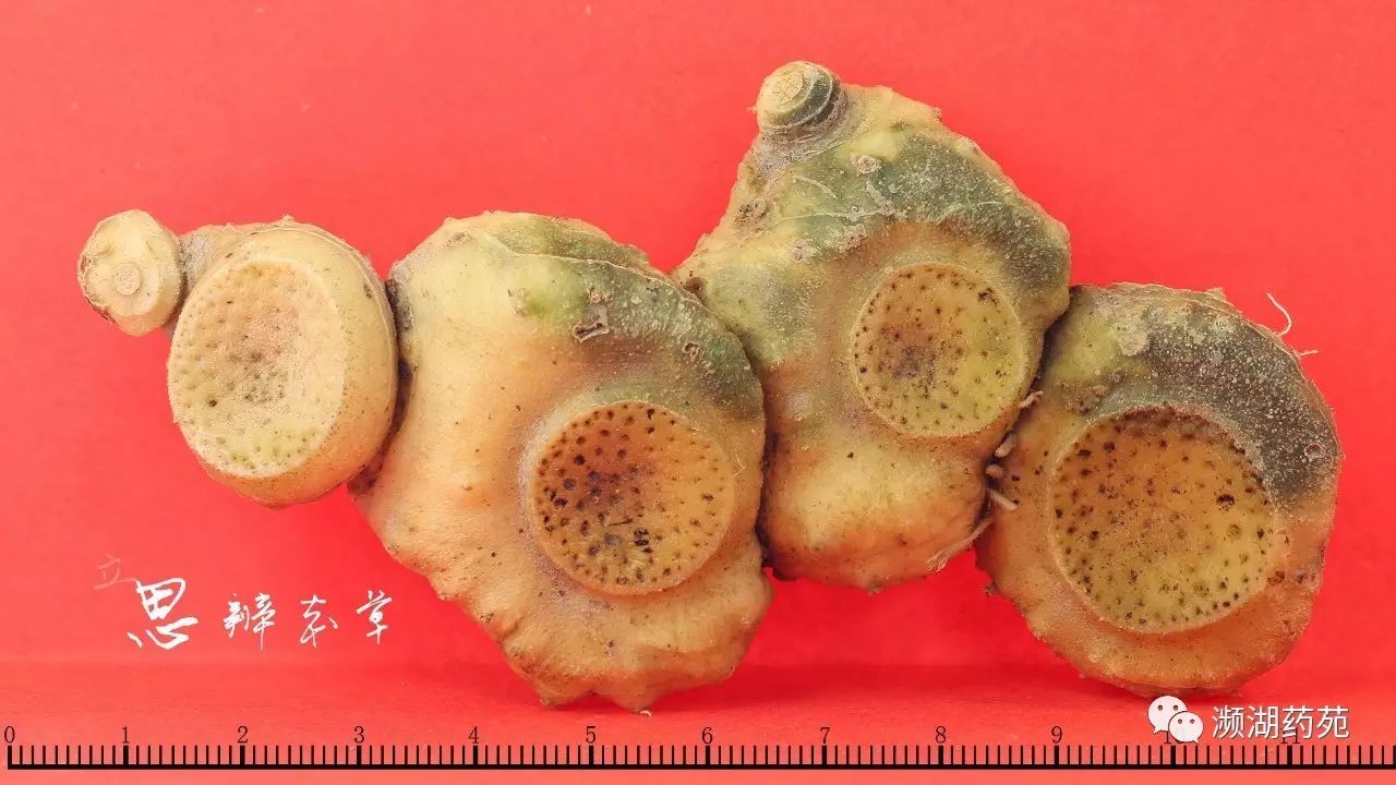 上图示姜黄精断面,点状维管束,质润,略呈油性和粘性,冰糖碴样